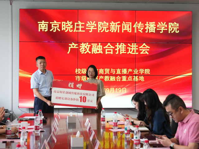 作为会议的重要环节,学院正式聘任多位来自业界的资深专家担任产业导师,他们将参与课程开发、实训、实习指导等。同时,学院与企业合作共建“IP短视频孵化实训室”,并接收南京垠星创域传媒科技有限公司总经理王琴雯捐赠的价值十万元的专业拍摄及剪辑设备,有效提升了实践教学的硬件支持水平。