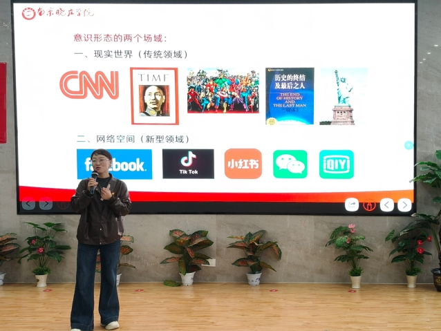 随后,沈萍老师于理科组团三阶教室开展“意识形态安全风险及其应对”专题课。沈老师结合典型舆论案例与历史事实,分析了不同时期意识形态领域出现的错误思潮及其影响,指出了部分西方叙事的片面性与误导性。通过回顾中外英雄人物曾遭遇污名化的现象,沈老师提醒青年学子要警惕隐蔽的意识形态渗透,增强辨别能力,筑牢思想防线。