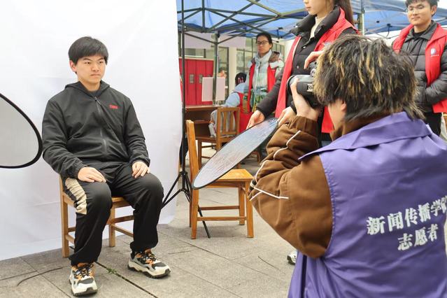 开学季是证件办理的高峰期,我院设立的证件照拍摄点位成为“统一行动日”现场的“热门打卡地”。为高效服务师生,由我院青年传媒部、志愿服务部派出的志愿者精心规划区域,设置排队区、等候区,专人负责信息登记与秩序引导,摄影志愿者则耐心调试灯光、指导拍摄姿势与表情,力求为每一位师生拍出满意的证件照。拍摄完成后,志愿者们及时整理照片,通过专属QQ群统一发放,让师生足不出校就能解决证件照刚需,切实把“我为师生办实事”落到了细微处。
