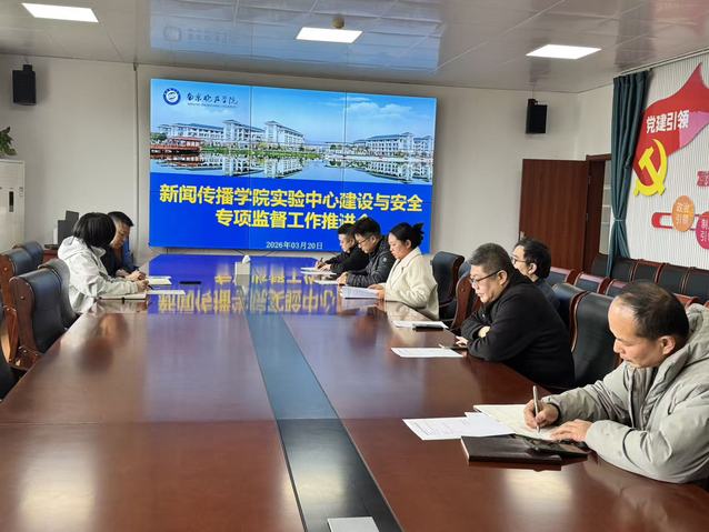进一步牢固树立安全发展理念,切实增强实验室安全管理能力,深入贯彻落实学校实验室建设与安全专项监督工作要求, 2026 年 3 月 20 日下午 14:30,新闻传播学院在理组 D413 召开实验中心建设与安全专项监督工作推进会议。学院党委书记陈长伟、副书记张颖以及实验中心全体实验员参加会议,会议由瞿文燕主持。