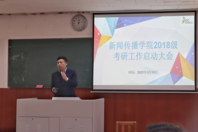 为进一步调动2018级同学们的考研积极性,帮助其尽早树立考研志向、确定考研目标,力求在2021年研究生考试中有新突破。3月10日,新闻传播学院在3号楼104召开了2018级考研动员大会。学院党总支书记陈长伟、副书记兼副院长饶黎、教务办主任邵阳、学工办副主任嵇娟娟、辅导员王楠楠老师以及2018级全体意向考研学生参加动员大会。