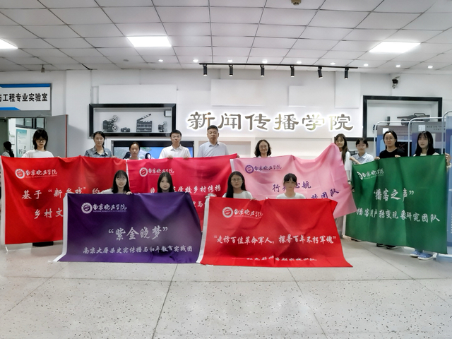 随后,进行了授旗仪式,7支暑期社会实践团队主要学生负责人上台,从指导教师手中接过队旗并合影,共同祝愿本次暑期社会实践圆满完成。